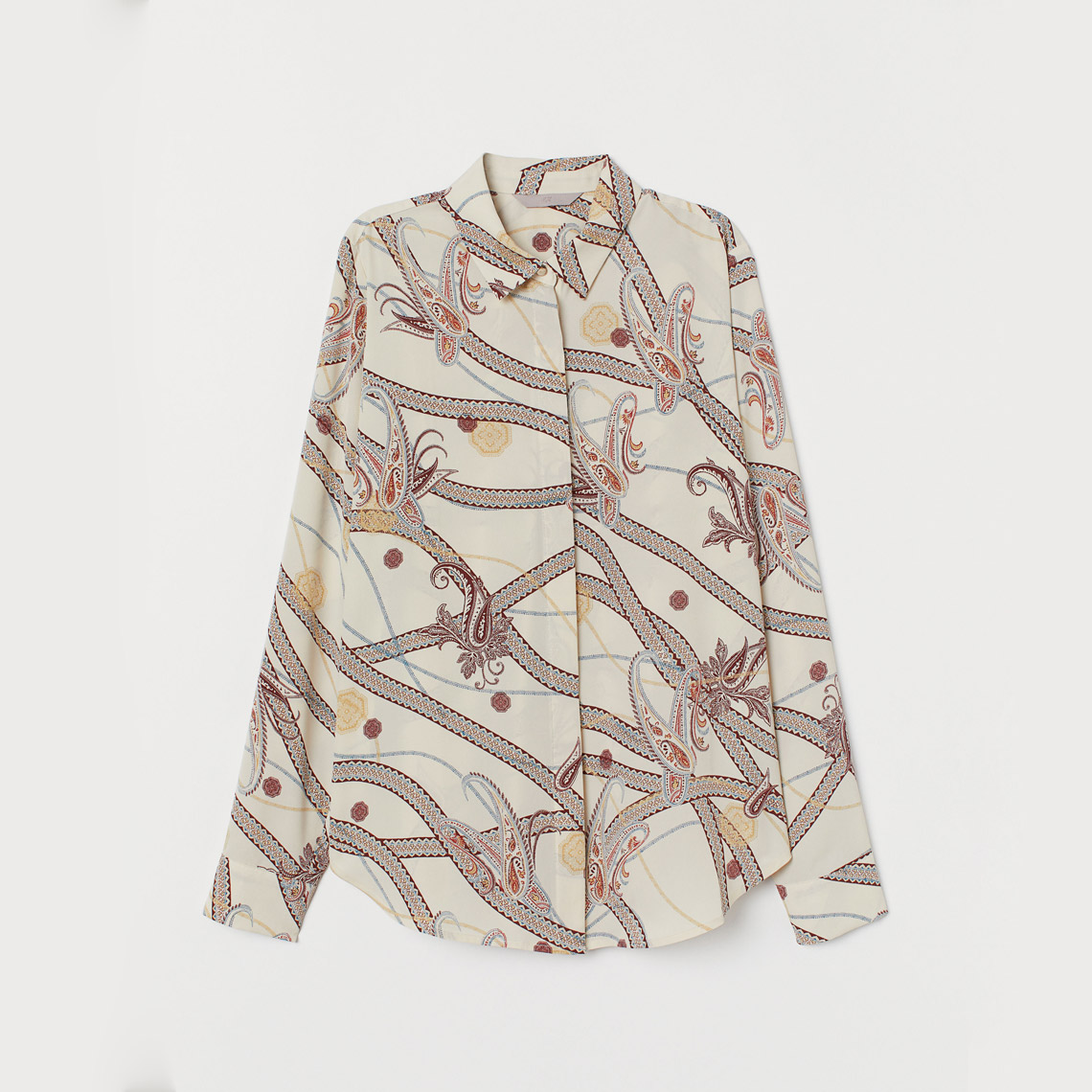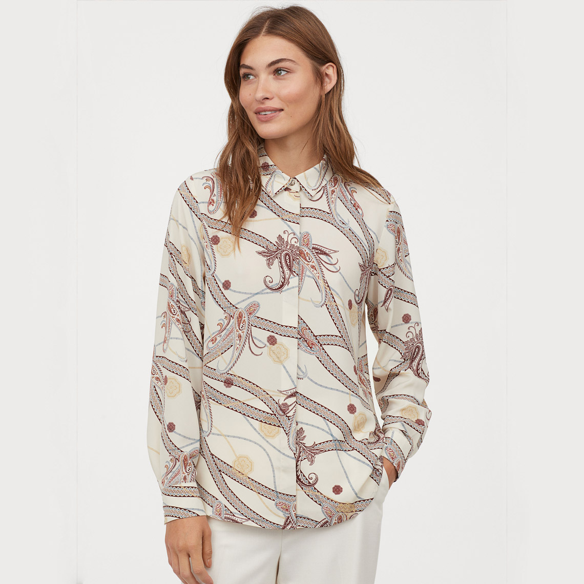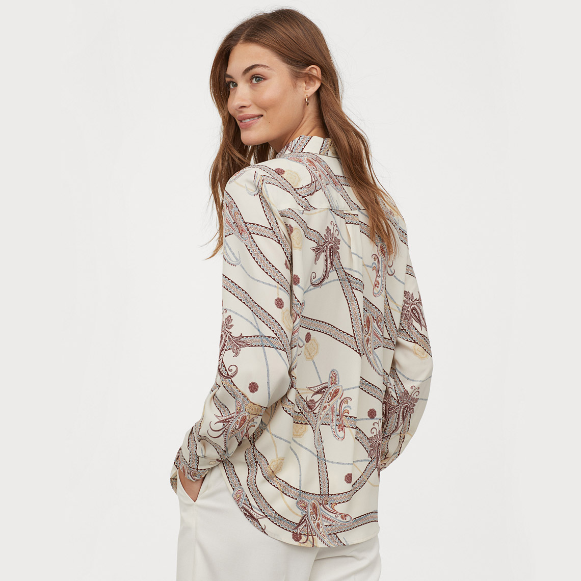 V-neck blouse in woven viscose fabric with a printed pattern. Buttons at front, ties at hem, and long, slightly wider sleeves with gathered cuffs.. A hybrid space that mixes office, showroom, café, co-working and event space in One, Menu Space required a chair that could suit a range of purposes.